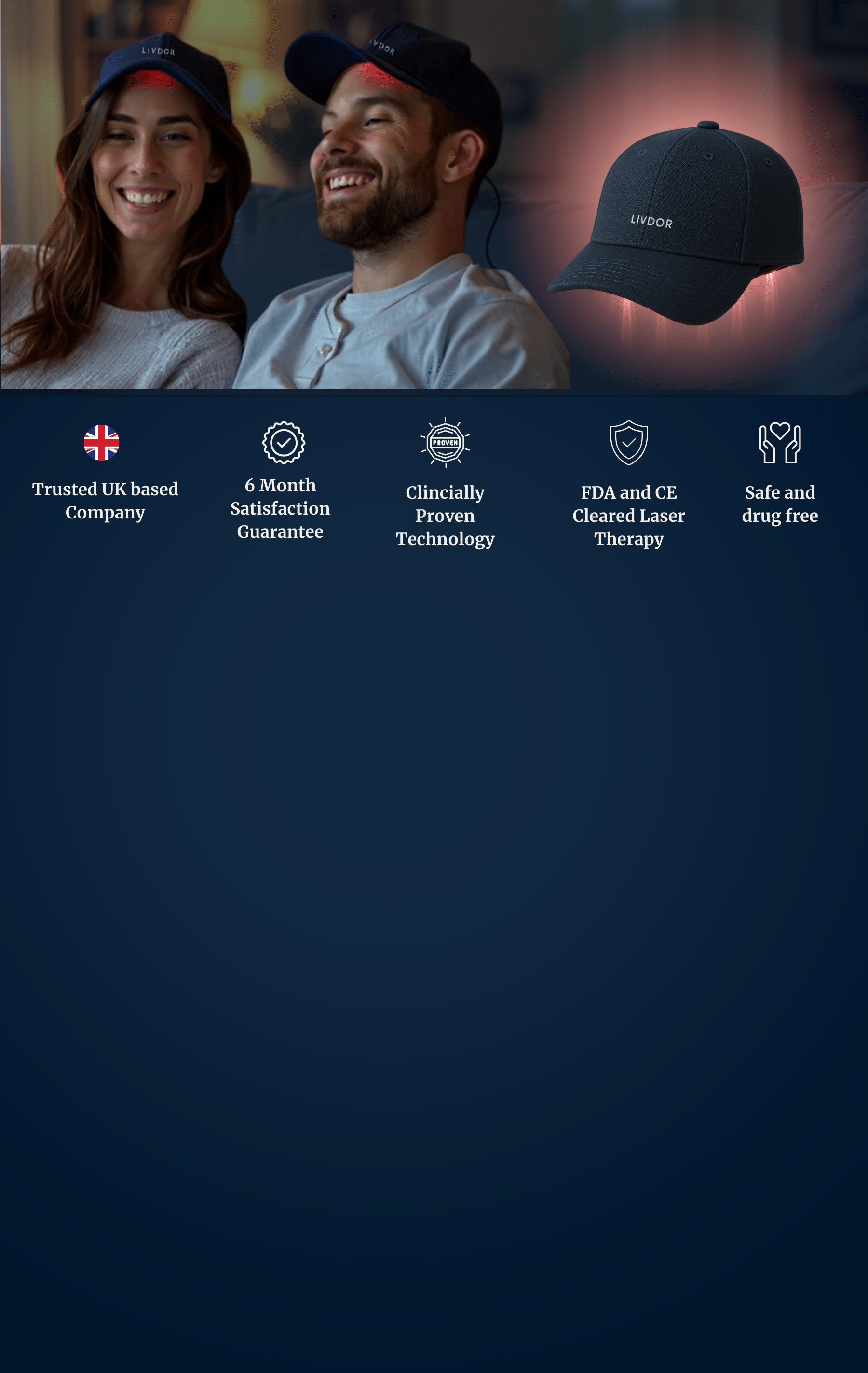 At LIVDOR, we believe hair regrowth should be simple, safe, and backed by science. Our cap uses medical-grade lasers with clinically proven low-level laser therapy (LLLT) to help men and women combat early hair thinning and encourage thicker, fuller growth. The earlier you start, the better your results.